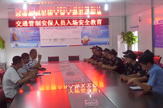 总承包部重点检查了路面施工现场的出入路口交通安全警示标识标牌、路障设置以及现场交通值守人员到位情况和交通管制制度执行情况。现场检查后,检查组对全线交通管制安保人员进行了入场安全教育培训,并对交通管制提出五点要求:通道口值班室实行24小时值班制,不得空岗、脱岗;上岗时必须着装整洁,配戴规定的装备和工作牌,仪容端庄、文明执勤;按管理制度对进出车辆进行管理并做好登记,谢绝无关车辆进入;加强对施工全线的巡查,发现隐患及时向相关组织报告;对施工车辆进行一次全面的安全现状、车辆技术状况检查;加强对运输车辆驾驶员的安全教育;向施工沿线的当地政府发出书面报告,请求协助做好当地村民的安全教育,禁止社会车辆和当地行人进入施工红线,同时向沿线群众发放宣传单,大力宣传渝广高速公路封闭施工,禁止非施工车辆及行人进入施工红线,确保施工安全进行。