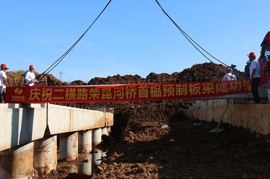 预计二横路荣昆河桥预制板梁将于本月20日完成安装任务。