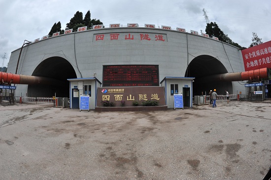 飞桥英姿著宏篇,穿隧新风架通途。四面山特长隧道全长4880米,是全线重点控制性工程,设人形横洞12处,车行横洞6处,紧急停车带12处,采用双向、双洞掘进施工,以右洞为先行洞。