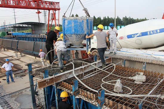 为保证流沙河桥预制箱梁浇筑任务顺利进行,组织召开了预制箱梁施工技术交底会议,对施工过程中可能出现的问题制定专门的预防措施,并对安全、试验、测量、物资、砼生产等相关部门的配合均做了大量详细的布置;产品部对现场施工人员进行了严格的安全质量培训,强调了现浇梁施工的安全和质量标准,提高了施工人员的安全质量意识;产品部各部门员工齐心协力、默契配合,现场施工、运输、实验、调度等各项工作有条不紊,有效解决了施工中存在的难题,确保箱梁浇筑任务按节点完成;在砼浇筑过程中产品部工程部管理人员全程现场指导施工,随时解决砼浇筑过程中的各种问题,跟踪进行现场保障和技术督导。